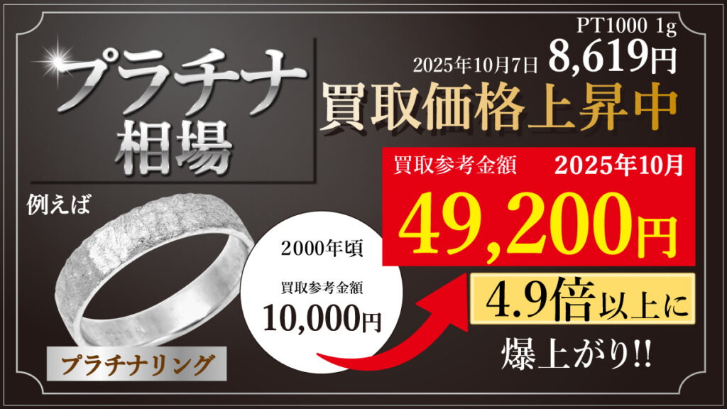 プラチナ相場の高騰によってどれぐらい買取金額が上がっているか分かる買取実例をご紹介いたします。