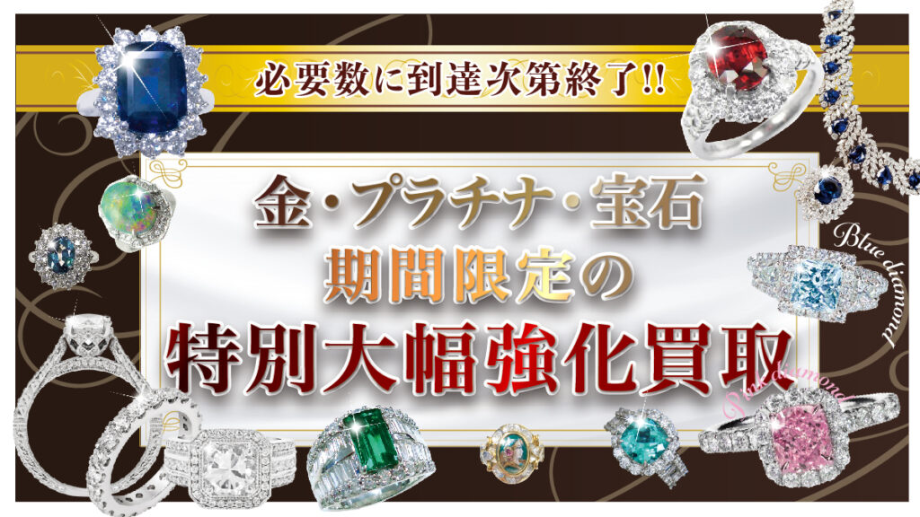 【緊急開催】大型イベント販売用の在庫補充のため、金・プラチナ・宝石特別強化買取キャンペーン【必要数に到達次第終了】