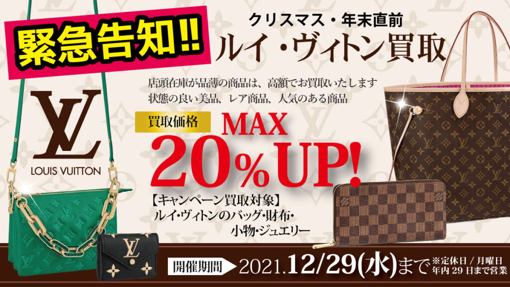 緊急告知!! 【店頭】12/29(水)まで ルイ・ヴィトン買取査定MAX20%UP!